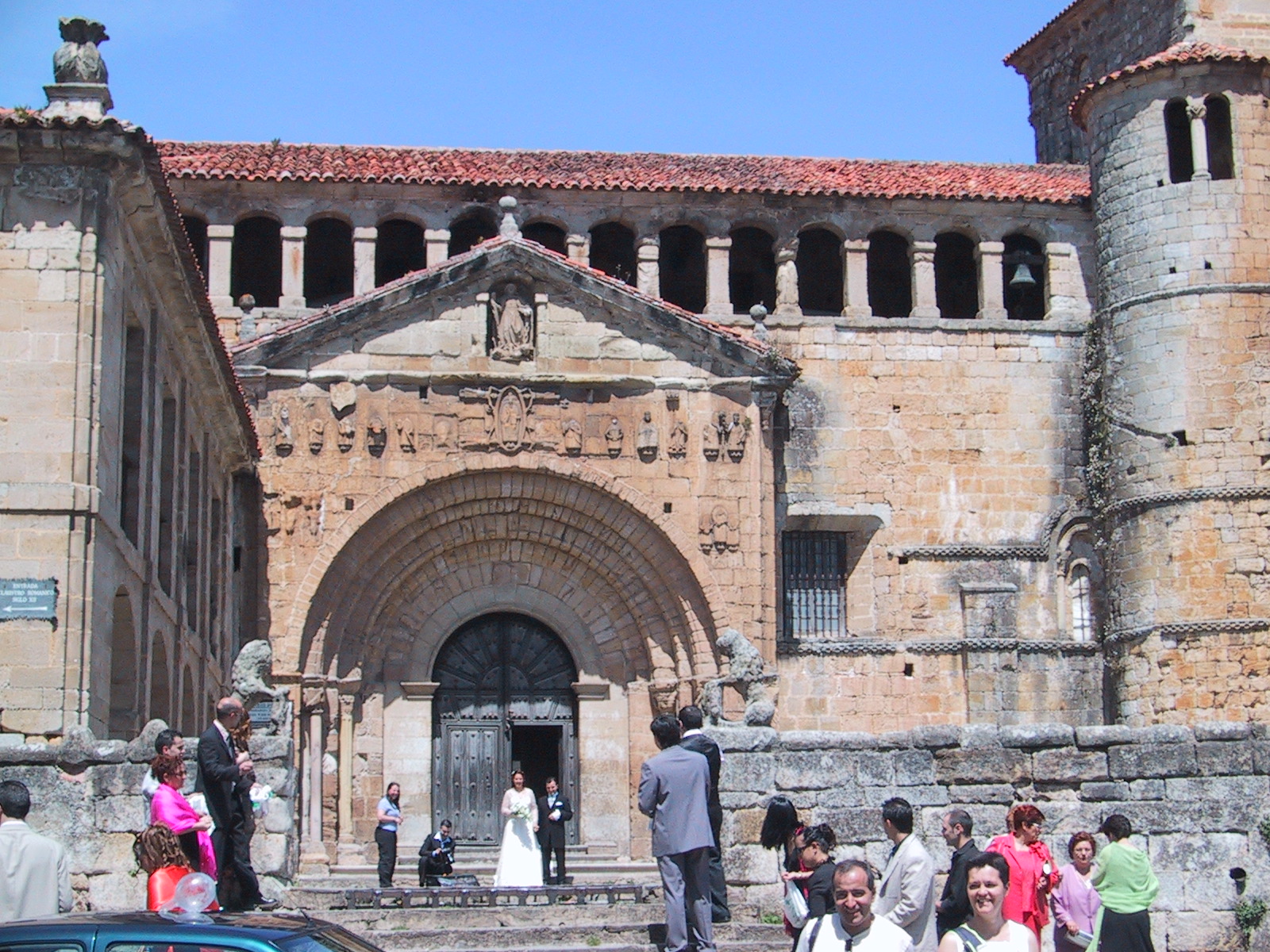 On Saturday Mike and I caught a bus into Santander and we wandered round the shops. The old part of the city was mainly destroyed in a fire in 1941 so not much remains but the modern part is pleasant - much more attractive than Bilbao. After lunch at a tapas bar we caught a bus to a little village called Santillana del Mer which Jean Paul Sartre apparently called the prettiest village in Spain. It dates back to the fifth century and has lots of very old buildings, a big church with a Roman crypt, and all the streets are cobbled. There was a wedding going on at the church and all the young female guests were dressed in long dresses - very pretty. When the bride and groom came out they were met with a shower of rice and rose petals. They then opened a large box, wrapped like a wedding gift, which had been sitting in the sun for at least two hours at the bottom of the steps. Out of the box flew two white, rather overheated, doves. The town is certainly extremely attractive and has a plush Parador if you feel like staying over. However there were lots and lots of tourists even this early in the season and every other building is a gift shop or cafe. When we got back to Santander we managed to get on the wrong bus to the marina and ended up with an extra hour's walk when we realised our mistake.
