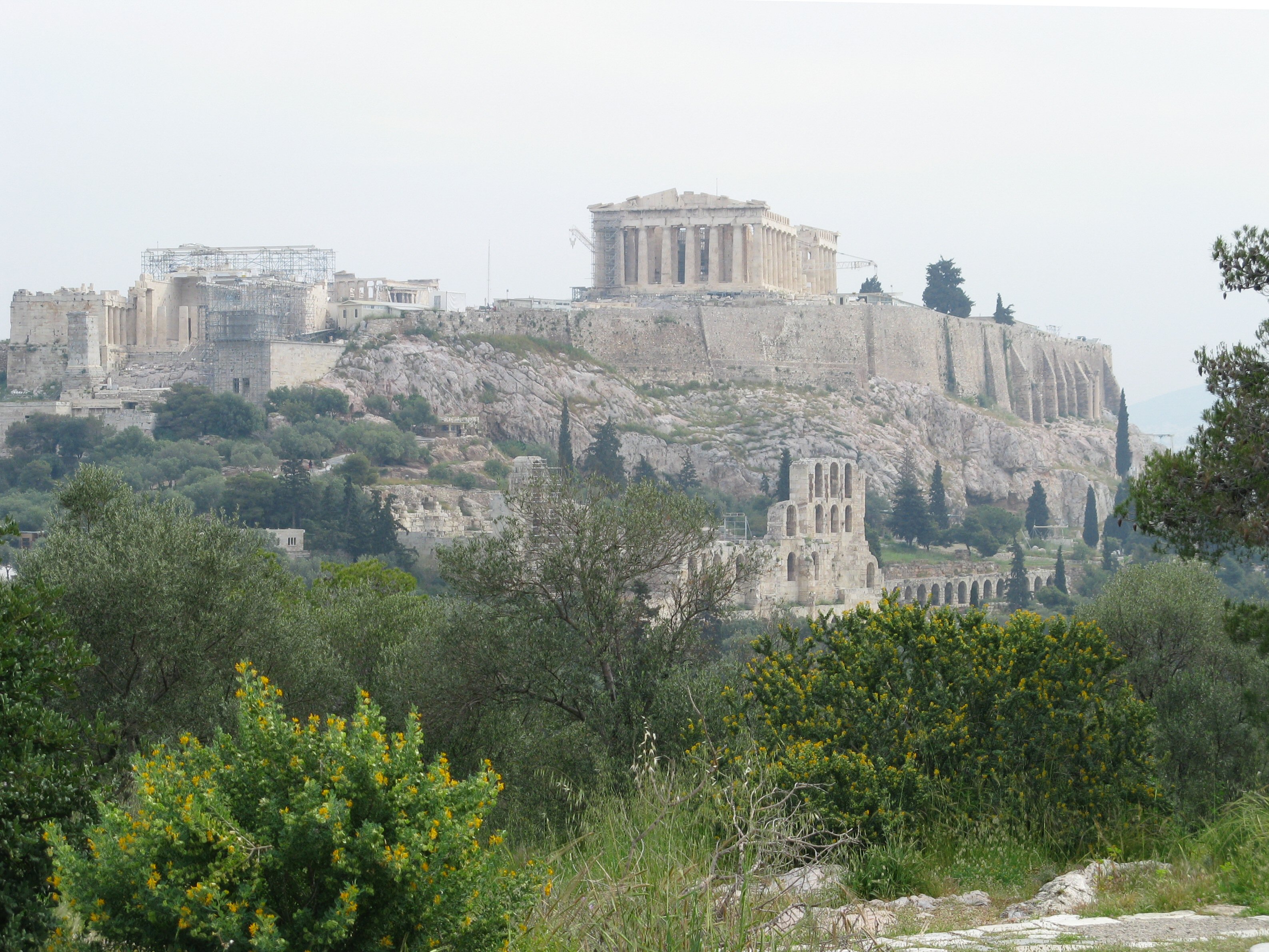 and ancient sites were closed. This didn't matter as we climbed up the lovely green hill of Philiopappus